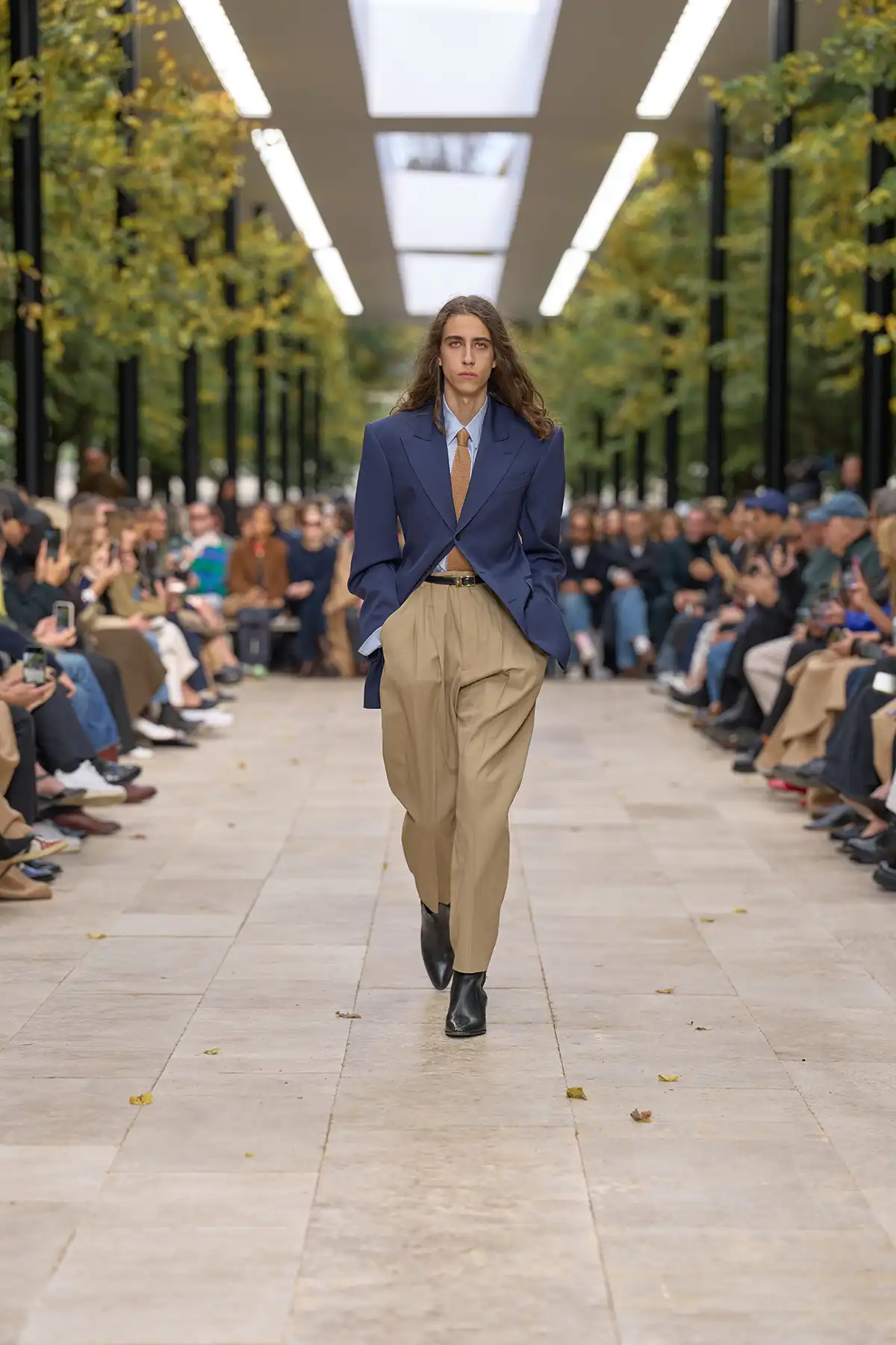 In this show, Michael Rider, the new Creative Director of the house, offered a tangible and refreshed perspective on ready to wear fashion, marking his first official collection with a distinct and confident vision. Breaking away from traditional show settings, Rider chose not the usual white boxes or forgotten warehouses, but a location 45 minutes west of Paris, the expansive Saint Cloud Park, spanning over 1,000 acres of lush greenery and open skies. Here, sunlight and natural light became integral to the experience.