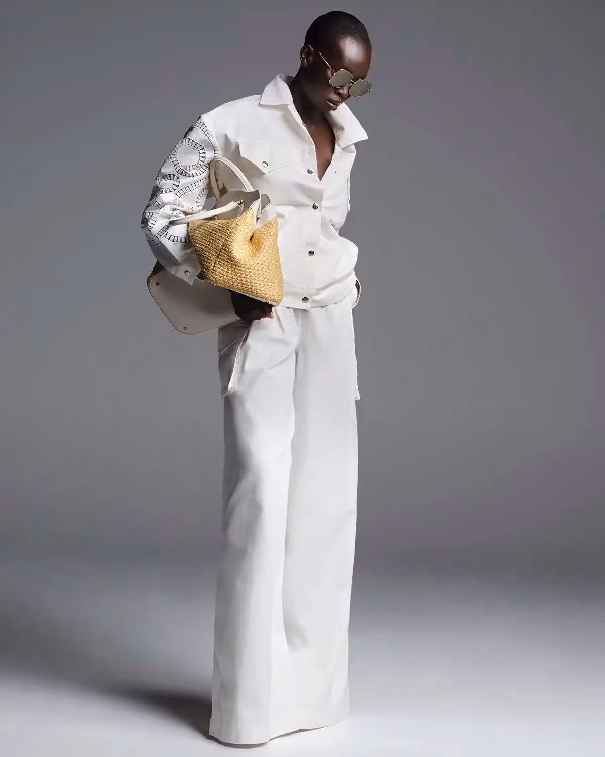 تعزز هذه الأجواء المرهفة مجموعة إكسسوارات فنية بلمسات مدروسة: حقيبة توت كبيرة تخفي الضروريات اليومية، حقيبة يد مغلّفة تضيف لمسة من الاتقان، ونسخة مستوحاة من الخيزران من حقيبة Wave الأيقونية تمنح إطلالتك أناقة لافتة. الأحزمة تضيف هيكلية وأناقة، سواء أتت على شكل شريط ناعم من جلد النابا، أو حبل رفيع مزدان بشرّابات. ومن الصباح حتى منتصف الليل، يمنح العقد الطويل المتدلّي بريقًا خافتًا من الذهب.
