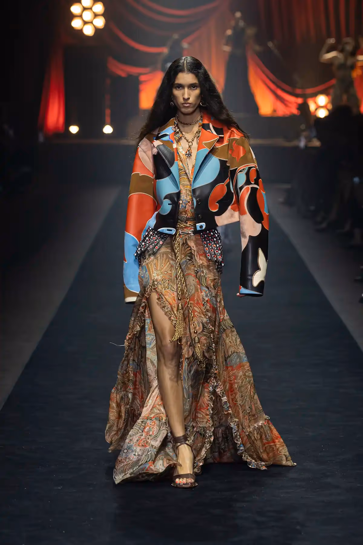 The Etro Spring/Summer 2026 collection embodies a fluid and dynamic language, where colors and prints flow over the body as if harmonizing with every movement and gesture. It is more than fashion, it is an expression of life itself, with its rhythmic pulse and constant transformations.