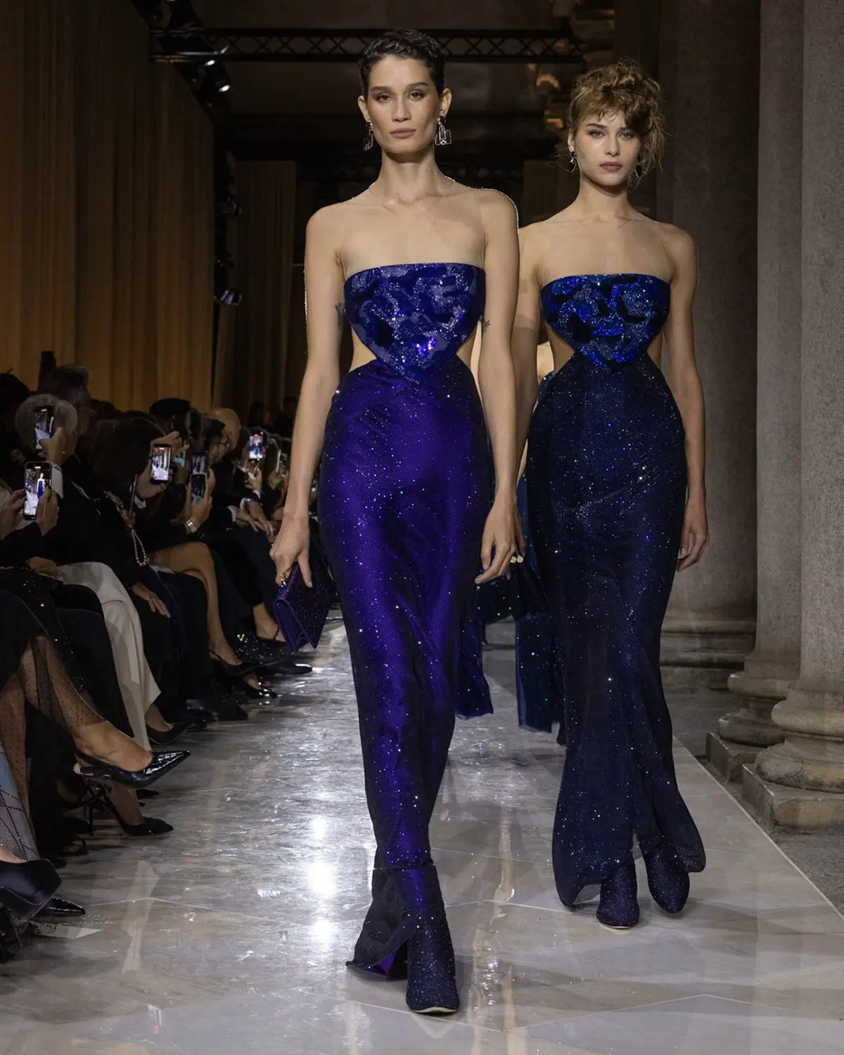 One of the standout features of the collection was the use of draping and fluidity in many of the garments. Armani, who has always been a proponent of fluidity over rigidity, showcased a new sense of softness in the lines of his garments. Silhouettes flowed naturally, creating an effortless grace that has been one of the designer's trademarks throughout his career. The movement of these pieces on the runway was mesmerizing, as they appeared to glide with the models, further reinforcing the idea that fashion should be an experience, something to be lived in, not just observed.