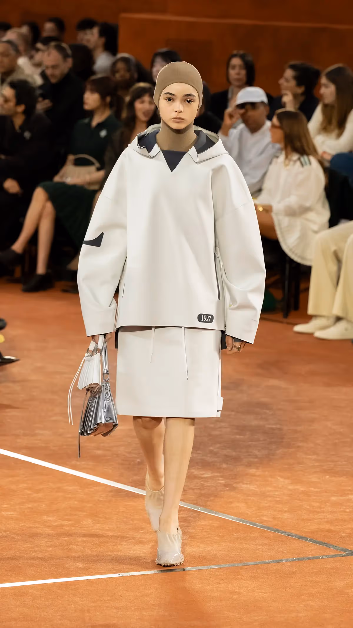 Transforming the iconic Roland-Garros clay court into an intimate gathering place, the Fall-Winter 2025 collection and scenography evoke “The Crocodile’s” cultured, elegant lifestyle as he moved from tennis champion to urban sophisticate. Clean, graphic, contemporary silhouettes segue effortlessly from sports inspirations into a social whirl inspired by RenéLacoste’s life in the Thirties, when he mingled with fellow athletes, actors, titans of industry and the fashion greats of the day. Now, as then, all those who help shape today’s culture are invited to take a seat at the table.