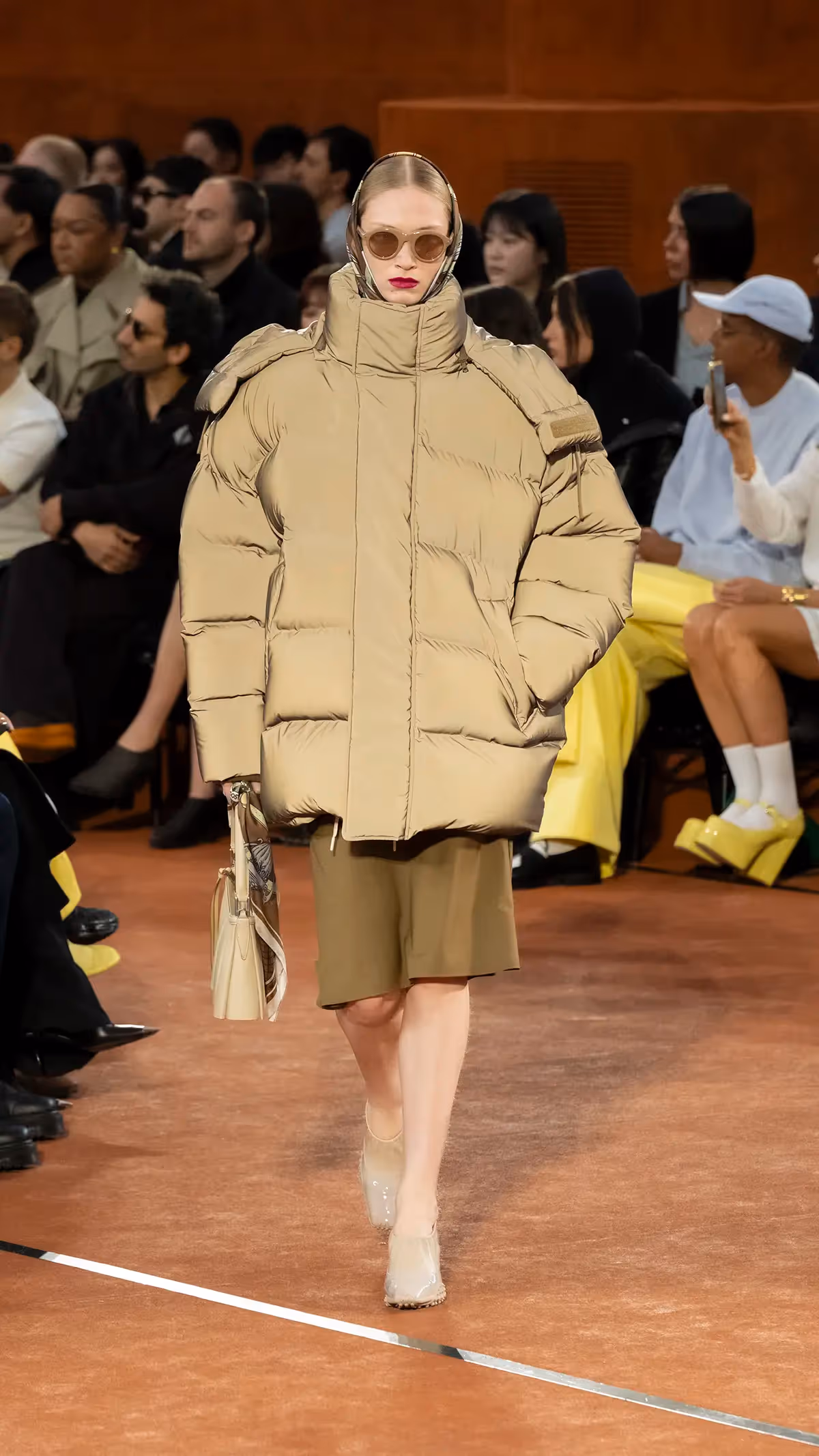 Sensuality, daring proportions, and recent heritage remixed with a 90s vibe are the baseline for an elegant yet dynamic wardrobe of bias-cut tops, pleated skirts, felted double breast blazers in vibrant pink mélange and scarf dresses that mingle effortlessly with slouchy tech pants and oversized puffers.