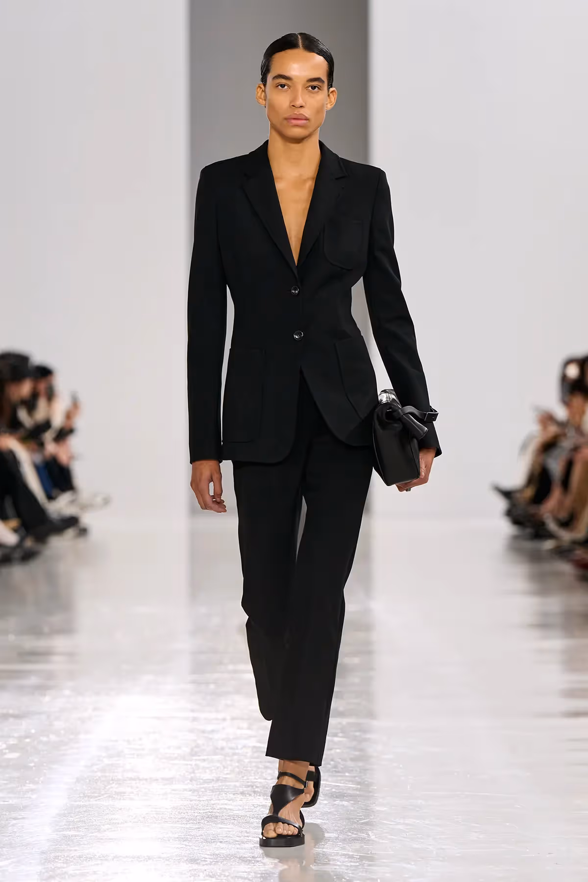 In colours borrowed from the phials in the lab; crystalline white, copper oxide as black as brown can be, deep delphinium blue and silver nitrate, Max Mara buzzes with cool, magical chemistry.