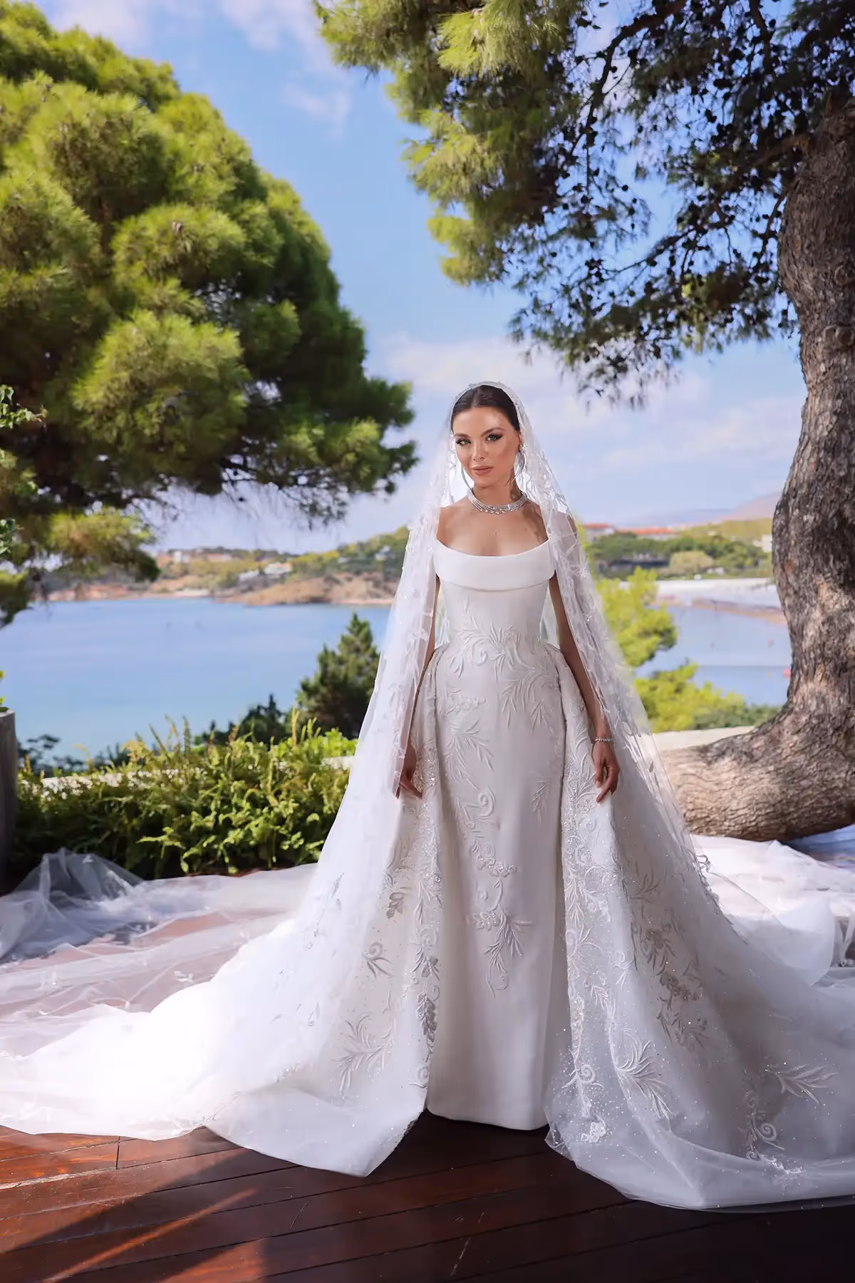 Maya Reaidy dazzles on her big day in Greece. The former Miss Lebanon appeared at the Olympic Stadium (OAKA) in Athens in a sumptuous custom GEORGES HOBEIKA bridal gown. The Maison’s virtuosity was expressed in a sculptural vision that summons the best of dreams and enchantment.