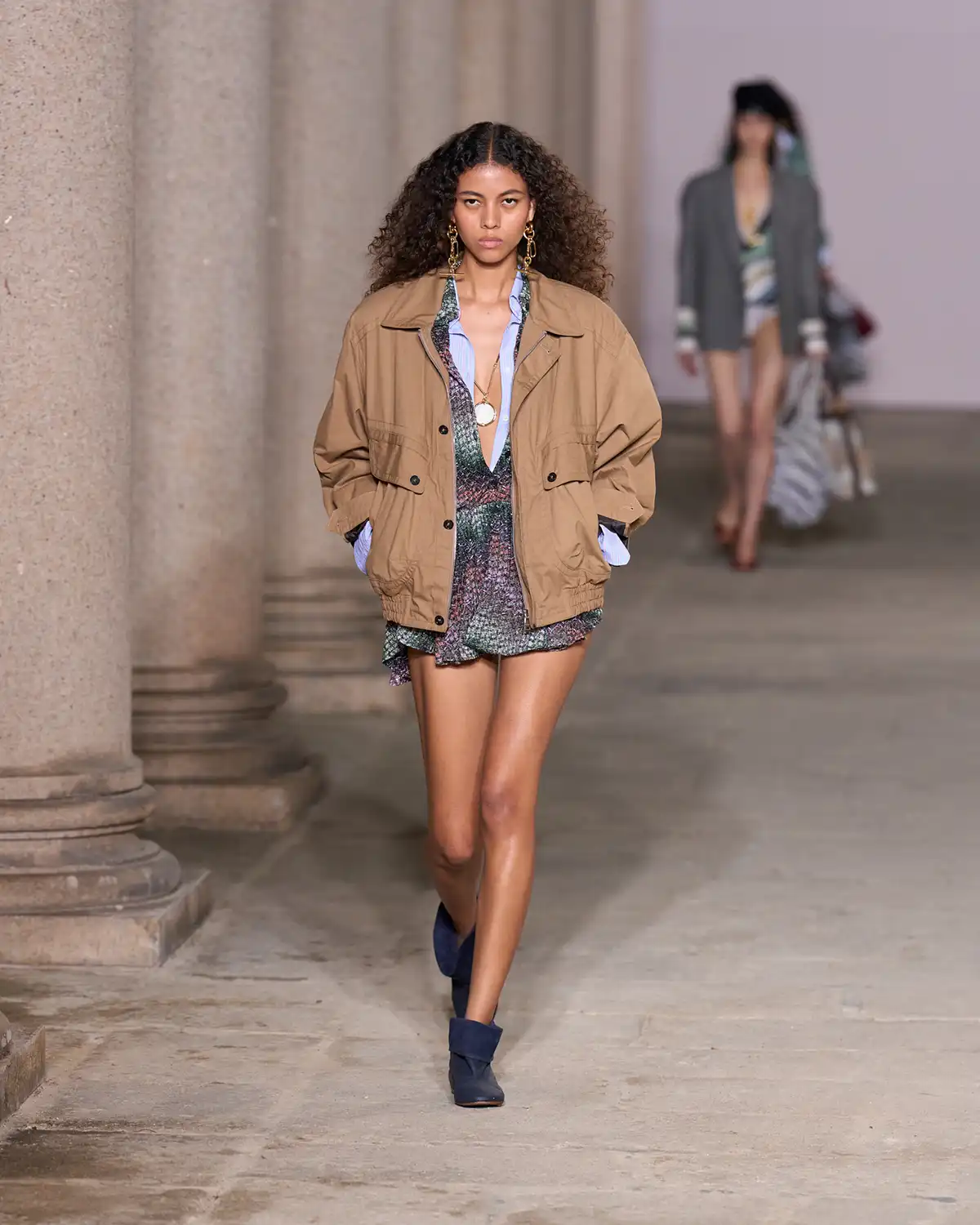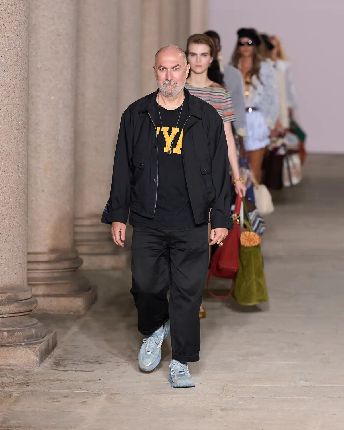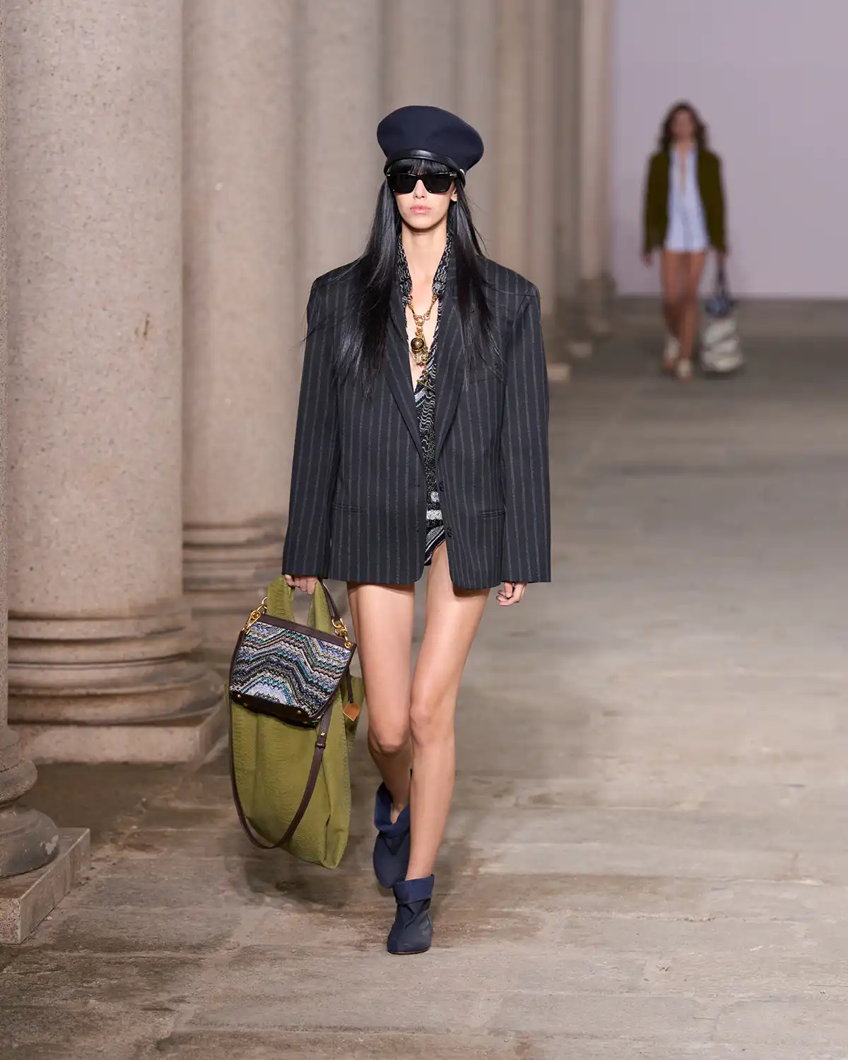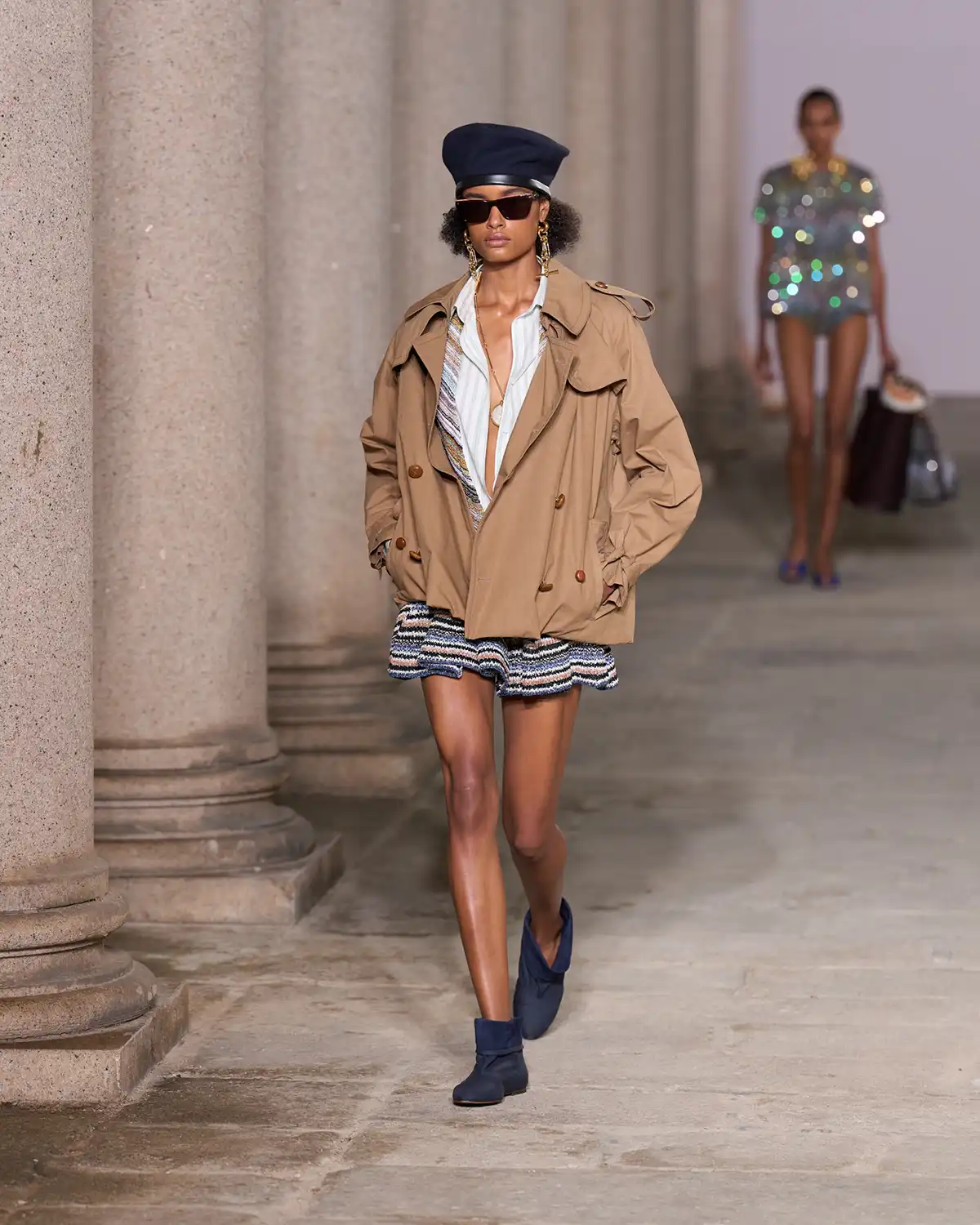 Colors and fabrics merged into a lively cadence of familiar patterns that Caliri reimagined, turning them into a renewed part of Missoni's evolving identity. What struck me most was the concept of blending new pieces with items drawn from the wardrobe of memories, a cozy cardigan, a striped shirt, a cashmere vest, summer shorts, and even a beach towel suddenly transformed into a key element of the look.