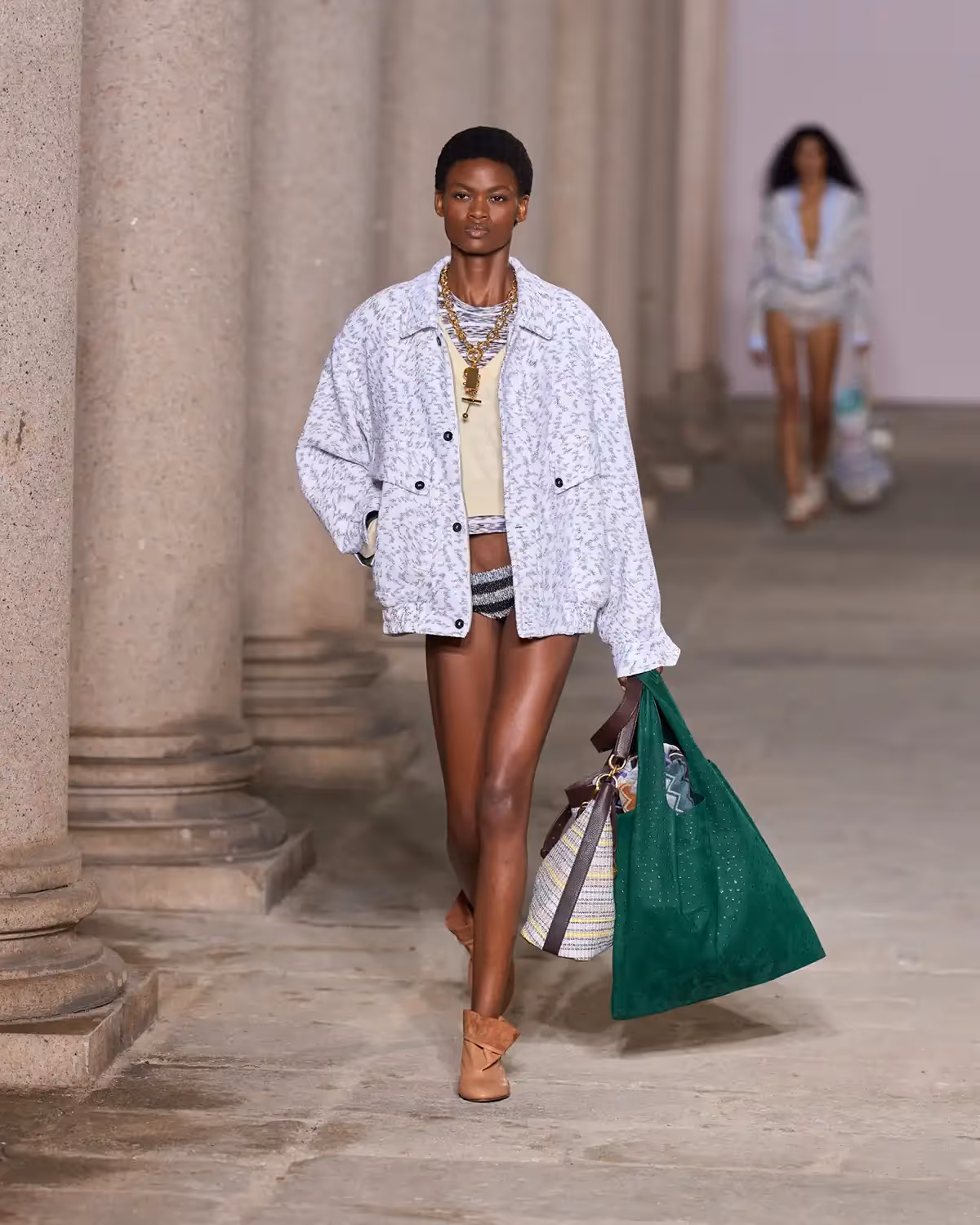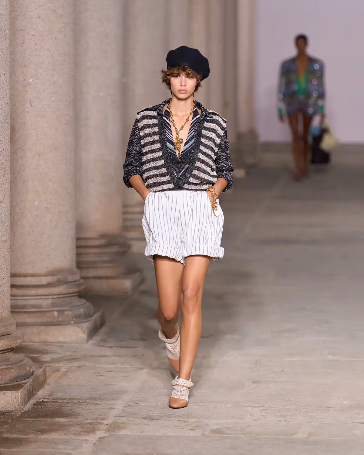 Missoni unveiled its Spring/Summer 2026 collection under the creative vision of Alberto Caliri, who continues to anchor the house's identity in the details of everyday life. What makes this collection stand out is not a conventional coastal narrative, but rather its ability to capture the rhythm of fast moving days that shift seamlessly between the sea and the city, creating looks infused with spontaneity and ease.