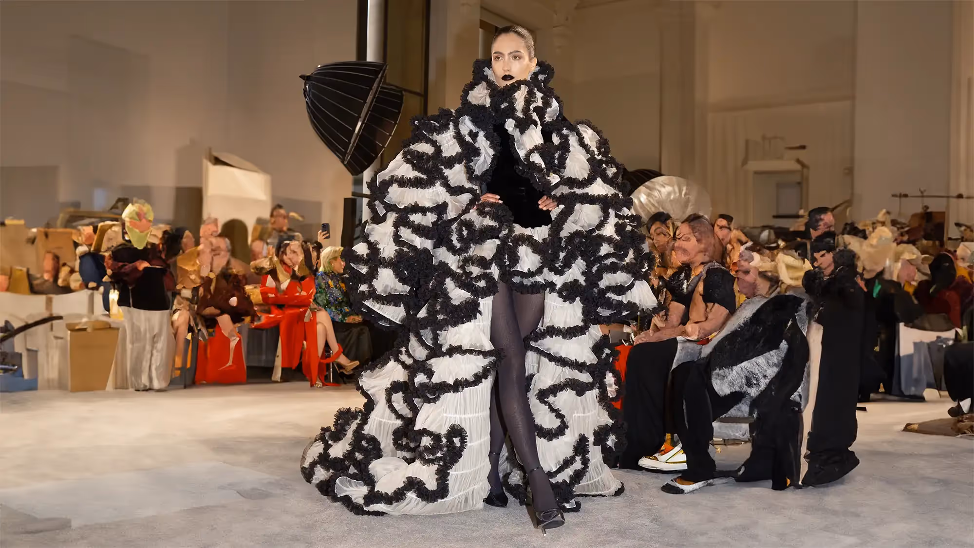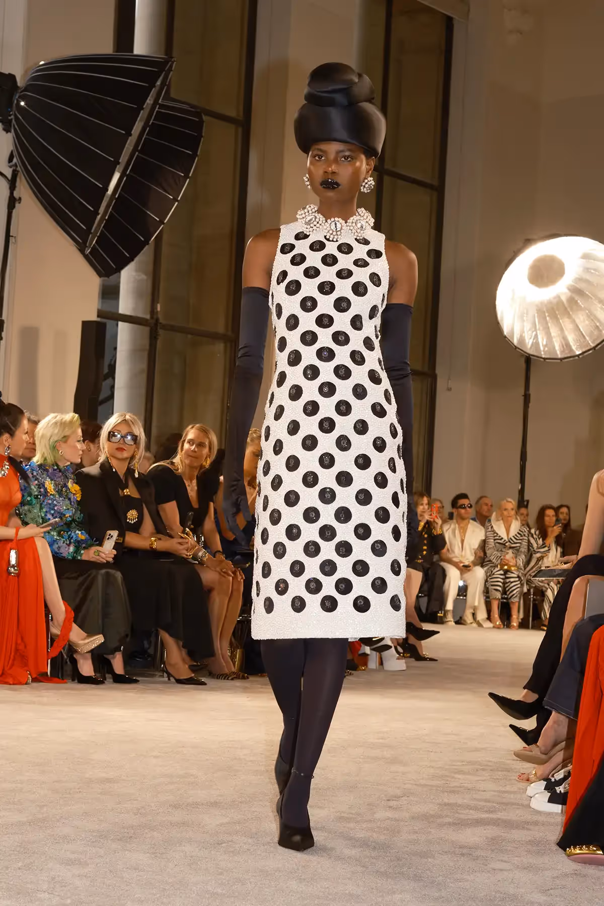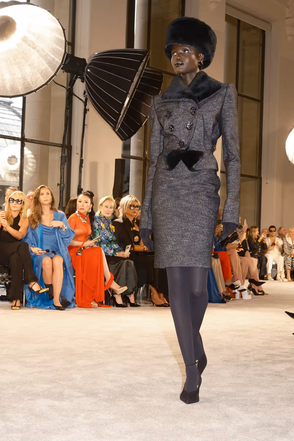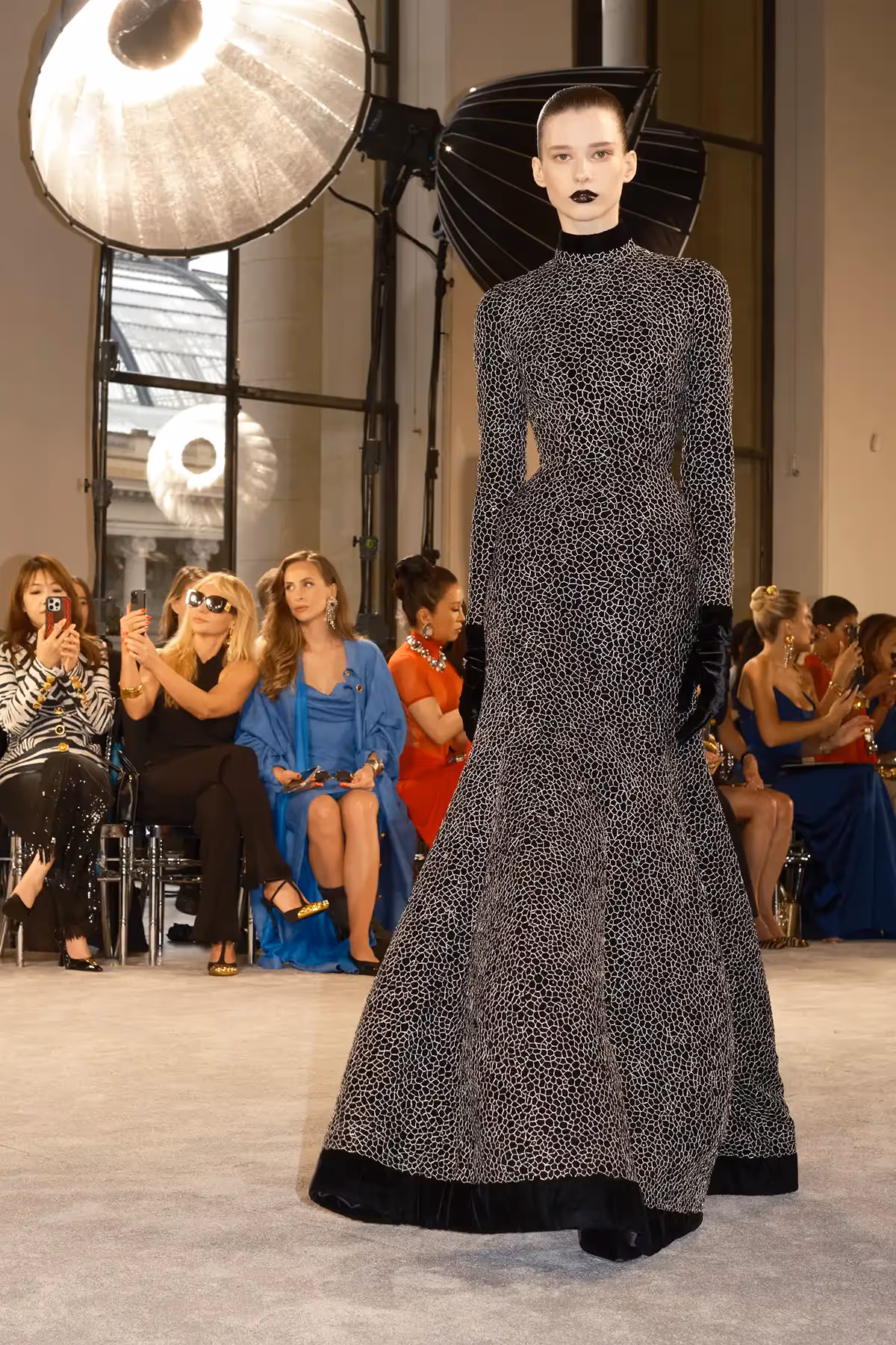 In retrospect, the years preceding Elsa’s temporary flight from Paris would turn out to be a year of peak elegance, as well as the beginning of the modern era of war. Two poles, existing improbably in the same city, at the same time. This collection is dedicated to that period, when life and art was on the precipice: to the sunset of elegance, and to the end of the world as we knew it. Conceived entirely in black-and-white, I wanted the collection to ask whether we can blur the line between past and future: if I deprived these pieces of color, or any notion of modernity, if I focused obsessively on the past, could I actually make a collection that looks as if it was born in the future? Gone are the expected markings of modernism; what remains is something elemental, a return to principles that in turn feels revolutionary. I’m proposing a world without screens, without AI, without technology—an old world, yes, but a post-future one as well. Maybe they’re one and the same. If last season was about making something baroque look modern, this season is about inverting archives to make them look futuristic.