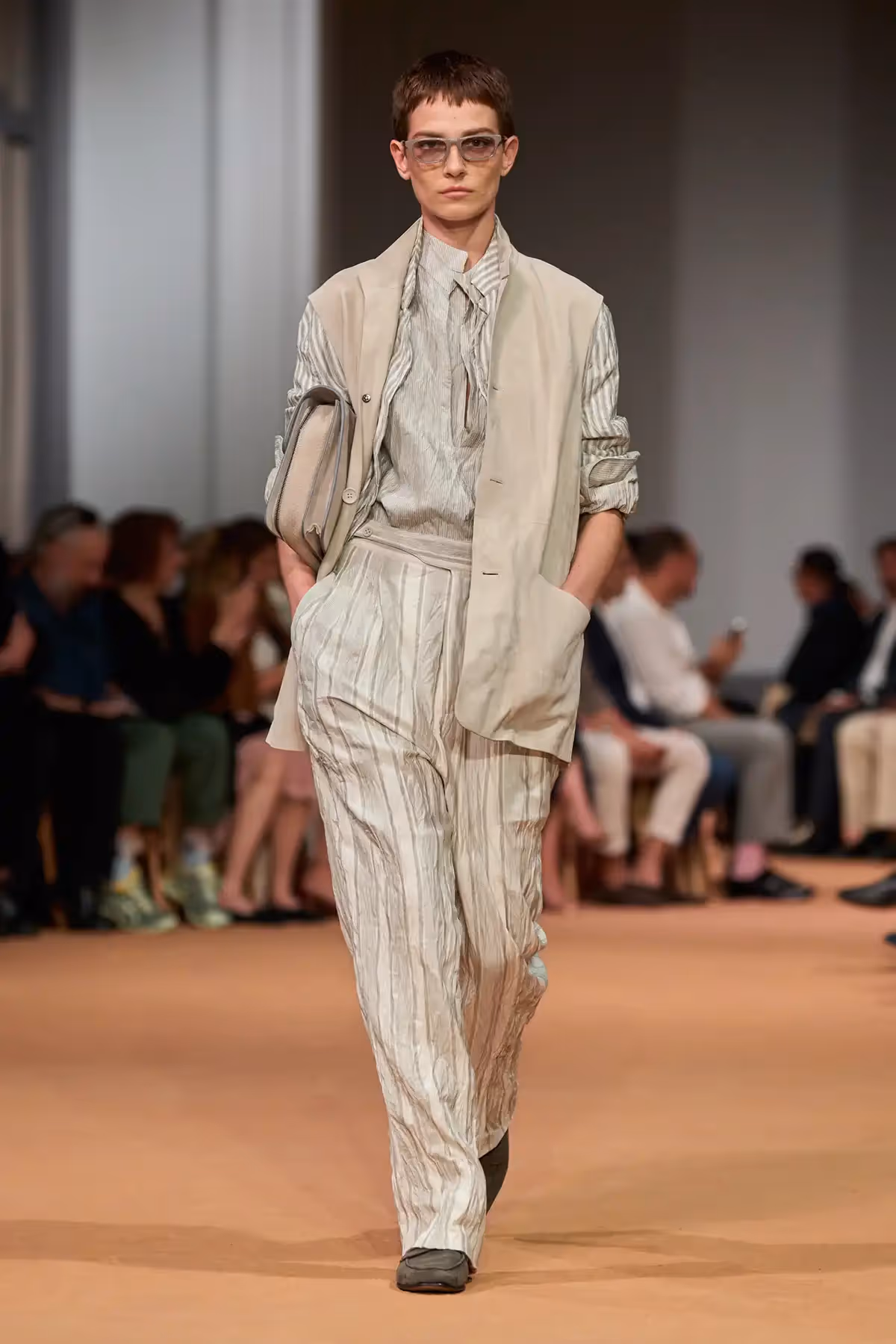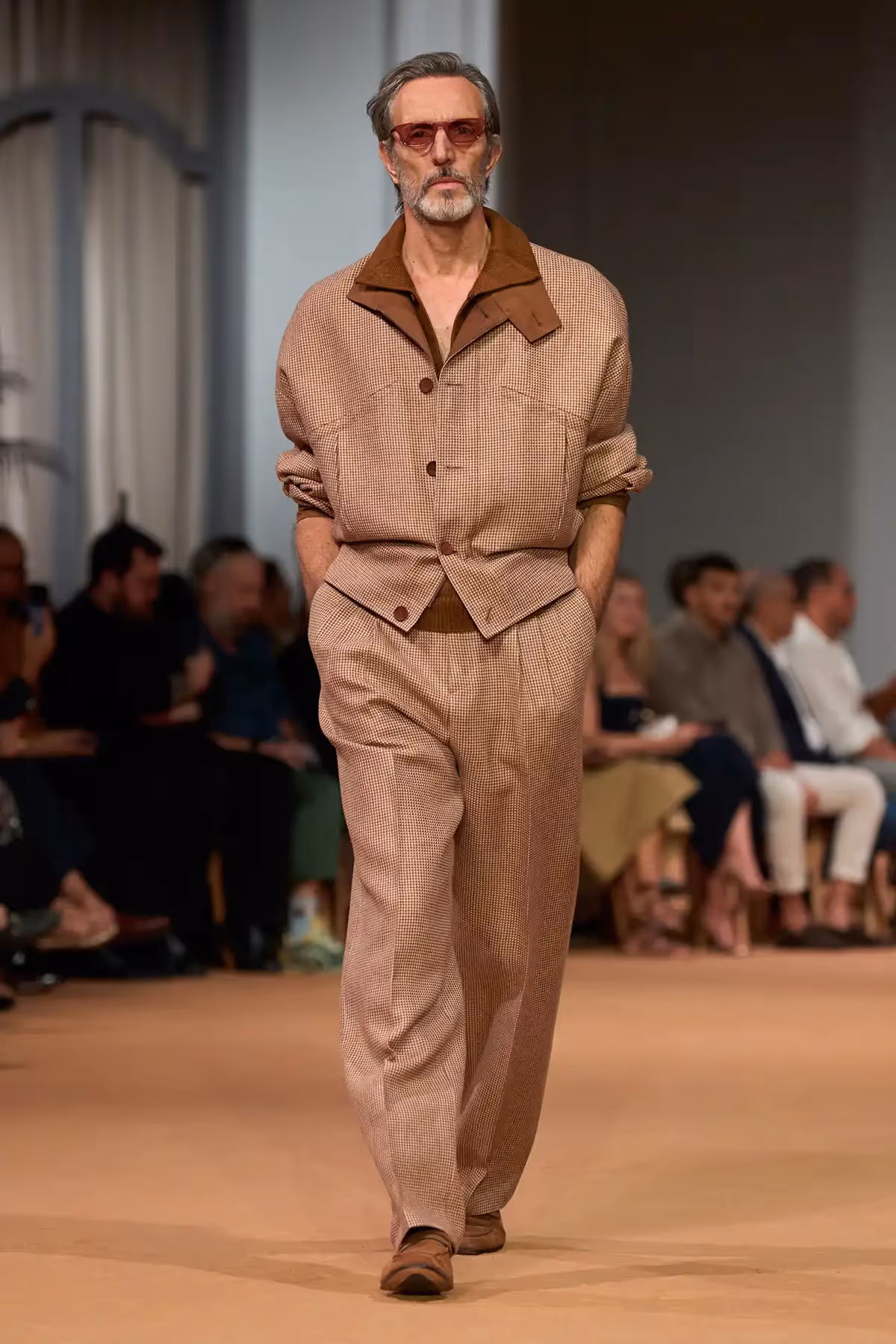 Zegna's Spring/Summer 2026 collection stands out not only for its visual elegance but also for the extraordinary quality of its tailoring. Each look on the Dubai runway was a testament to the brand's mastery of construction garments sculpted with precision yet designed to move effortlessly with the wearer. The cuts were clean and architectural, but softened with fluidity, revealing a thoughtful balance between structure and comfort. Zegna’s team clearly focused on achieving an almost weightless feel in each piece, making the collection ideal for warmer climates while still retaining a refined, sartorial edge.